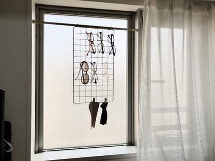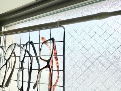 これにメガネやサングラスを掛けて収納しています。