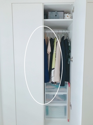 私は丸で囲ったところに「よく使う洋服」を掛けるようにしています。