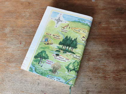 イラストが可愛いチラシを活かしてブックカバーにします。