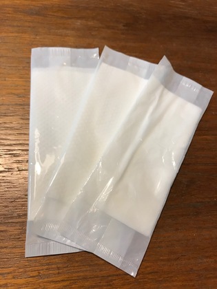 ただし、この紙おしぼり、早めに使用しないと袋の中で乾燥してしまうので注意しましょう!