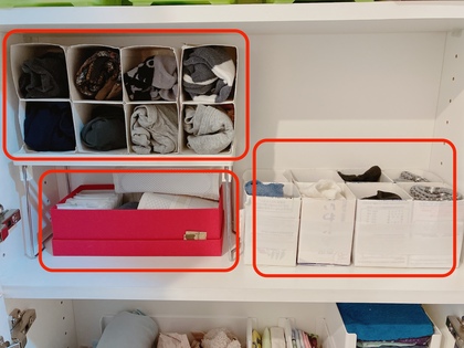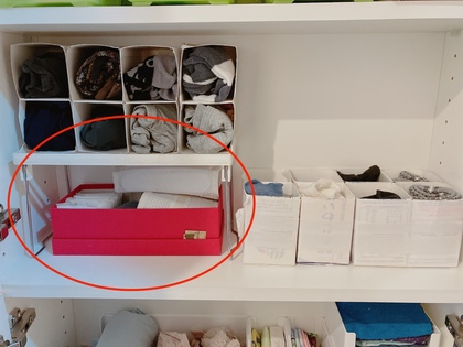 奥行きの少ない場所に見合う収納ボックスを買う前に試したいのが、空き箱を活用することです。