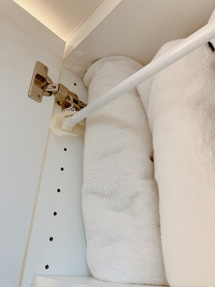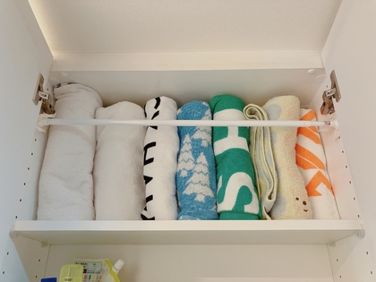 我が家では上部に使用頻度が低いバスタオルを収納します。