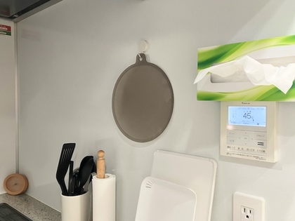 わが家では、思い立ったらすぐに使えるように台所の壁にマグネットフックをつけてシリコーン蓋をかけて収納しています。