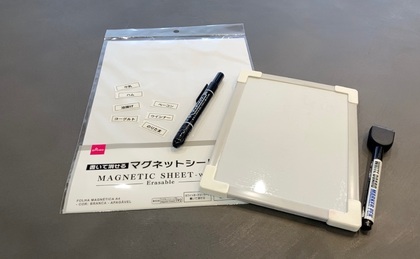ダイソーの「ホワイトボード」と「マグネットシート」を使います。