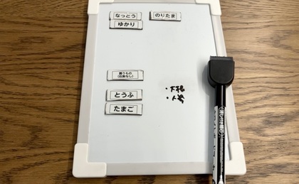 在庫なしのものを買い物するので、買い物へ行くときは、ホワイトボードをスマホで撮影していきます。